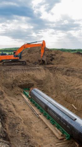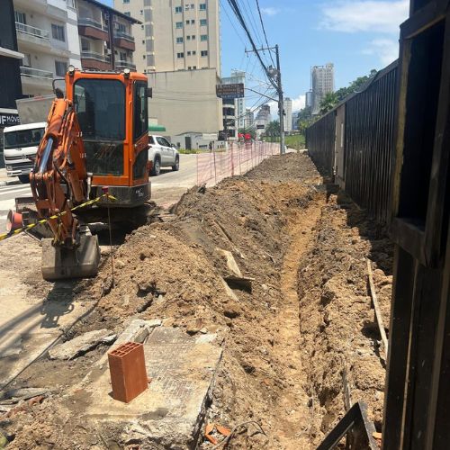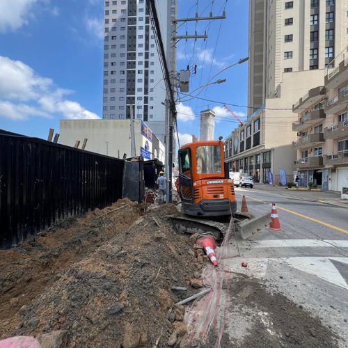 Preparação e escavação técnica para implantação de redes de esgoto e drenagem.